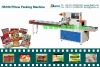 HS100 Pillow Style Biscuit Packing Machine is used to pack regular objects, like instant noodle, biscuit, bread, egg roll, moon cake, medicine, hardware, industrial parts, paper box, plate, etc. Well compatible with Instant Noodle Processing Line and Egg Roll Machinery. Dual frequency conversion, Bag length can be set and cut in one step, saving time and film. Reasonable construct, stable working performance, and PLC computer control, easy operation. Self fault diagnosis, clear fault display. High sensitivity photo cell color tracing, numerical input of cutting and sealing position for extra accuracy. Positioned stop function, without sticking knife or wasting film. Fully automatic and continuous. Various package sizes can be made. Technical Parameters: Packing speed: 40-230bag/min Film width: 90-370mm Pouch length: 65 - 190mm / 120 – 280mm Pouch width: 50 -160mm Production height: Max. 40mm Film roll diameter: Max. 320mm Dimension: 4020 x 770 x 1450mm